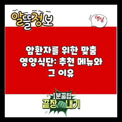 암환자에게 적절한 영양은 치료의 필수 요소로, 올바른 식단이 식이요법의 효과를 극대화할 수 있다는 사실을 아시나요? 암환자를 위한 맞춤 영양식단은 건강과 회복에 긍정적인 영향을 미칠 수 있습니다. 이번 글에서는 암환자를 위한 추천 메뉴와 그 이유를 상세히 설명드리겠습니다.