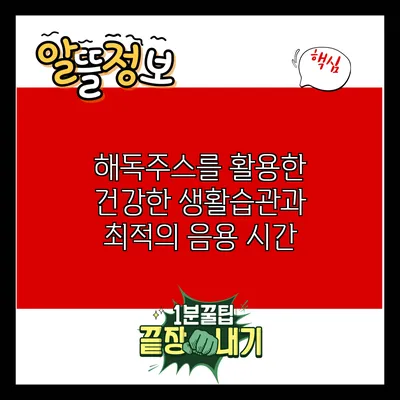 해독주스는 현대인의 건강 관리에 큰 도움을 줄 수 있는 음료입니다. 가장 좋은 음용 시간은 아침 공복이며, 운동 전후, 점심 시간 등 다양한 상황에서도 활용할 수 있습니다. 나만의 해독주스를 만들어 건강한 생활습관을 유지해 보세요. 해독주스를 통해 건강한 나를 만들어 가는 것은 여러분의 선택이랍니다!